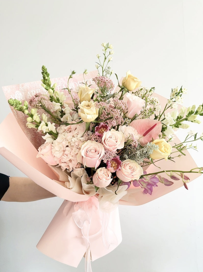 - Blushing Harmony is a soft and elegant bouquet designed by Fish Flower Vancouver. Featuring pastel roses and delicate lilac accents, it’s perfect for birthdays, thank-yous, or romantic gestures. Available for flower delivery in Vancouver.